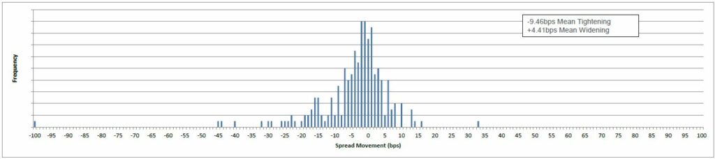 past month, 154 tightened and 71 widened. The mean tightening was