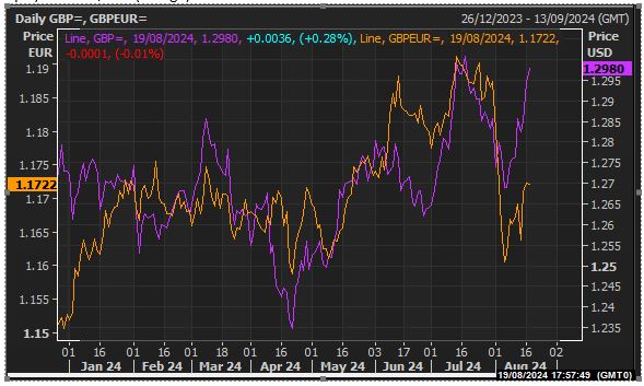 GBP/USD (purple) and GBP/EUR (orange) seen below.