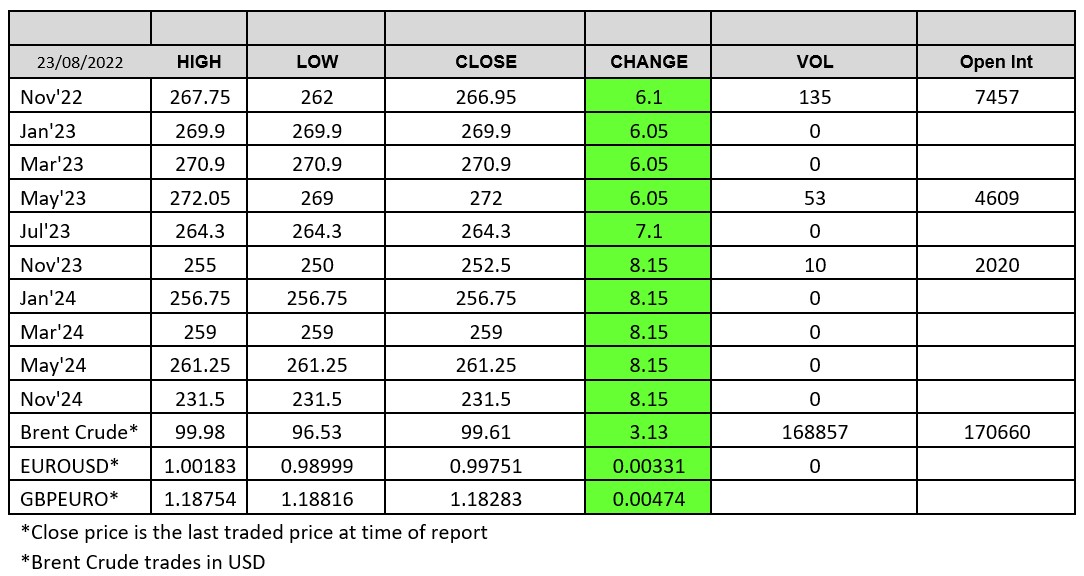 The bulls are on the run this Tuesday. US dollar set new highs overnight, all eyes are on the Jackson Hole meeting. Oil markets are rallying on data that Saudi are seeking to lower production levels, record low US oil reserves and a miscellaneous issue with the Kazakh oil transit pipeline running through Russia which has had to undergo key maintenance resulting in a 70% decrease in oil transit vols ……… what a surprise and who could possibly be behind this?! Tomorrow is the 6 month anniversary of the war in Ukraine which also coincides with Ukraine’s 31st independence day from the Soviet Union, numerous speculation in the news that the Kremlin’s top philanthropist, Vlad himself, may be sending a few undesirable things their way.