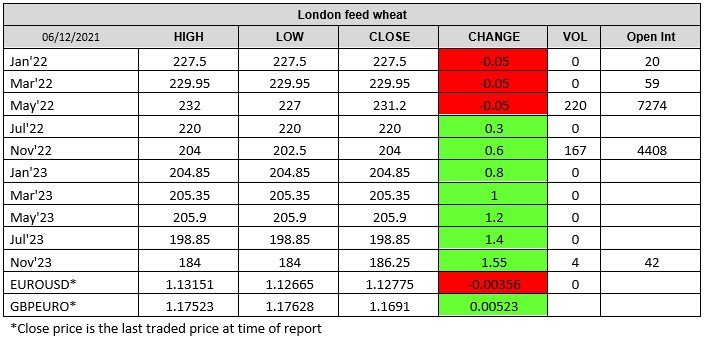 130kt of soybeans sold to China on USDA daily reporting. Export sales still remain subdued. Data to the 25th Nov 21 showed total soybean commitments at 37.17mmt versus 52.27mmt the same time last year. Bearish news on the long-term soybean market sentiment with South American prospects showing good growing conditions with Argentina boosting crop conditions as of 1st Dec-21 to 88% compared to 67% a week earlier. A lot of market chatter over Biden’s expected diplomatic boycott of the Olympics and China’s rebuttal. News is expected on US renewable fuel mandates and eligibility for credits in the coming days. Ethanol production remains strong, offering underlying support to corn prices.