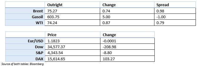 • Market still looks tight, with contracts being fulfilled as no alternative supply available. Shale producers in the US are still not turning the taps on, though they are hedging against another fall on the market. Production is expected to rise in 2022