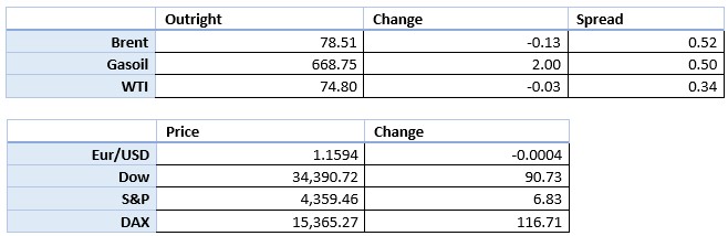 - Market steadier after two days negative run after builds in DOE stocks in the US were not as big as the API data suggested.