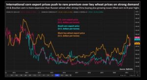Asian feed manufacturers are switching to wheat in animal rations as multi-year high corn prices constrict demand for the yellow grain widely used to fatten hogs and chickens. Some of the world’s top corn buyers such as China, South Korea and Vietnam are buying more wheat from Australia and the Black Sea region in the months ahead as the landed cost of corn has climbed to a rare premium to wheat. Combined, those three countries are forecast to buy 26.4% of global corn imports this year, according to the U.S. Department of Agriculture, so any substitution for wheat could have a large impact on global grain trade flows.