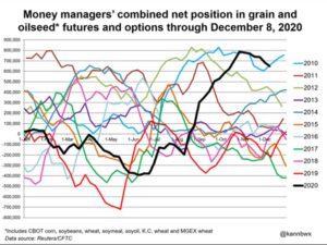 Speculators’ optimistic views of Chicago-traded corn and soybeans remain at historically high levels despite continued light selling last week, and although the wheat bulls had recently gone dormant, they have likely burst back onto the scene over Russian supply concerns.