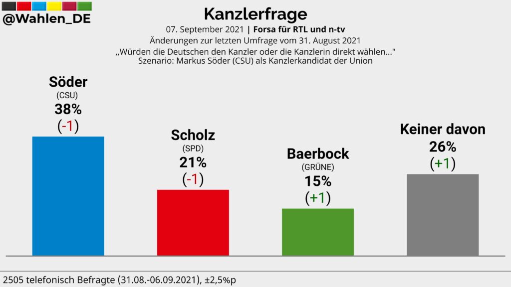 As far as the view of the Chancellor candidates go, the other two polls highlight that the public do not want any of them to take over from Merkel, and even more emphatically say that the CDU/CSU should have made Bavaria’s PM Markus Soeder their Chancellor candidate.